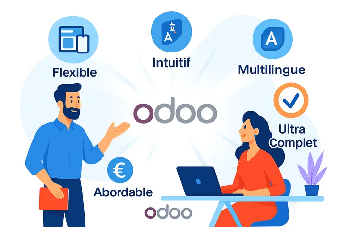 Face à SAP ou Netsuite, Odoo tire son épingle du jeu. Il propose une solution intégrée, souple, rapide à mettre en œuvre, et surtout beaucoup plus abordable. Ses fonctionnalités évoluent avec votre structure, qu’il s’agisse d’une PME ou d’un grand groupe.