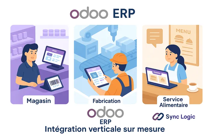 Qu’il s’agisse de commerce de détail, d’industrie ou encore de services alimentaires, Sync Logic configure Odoo pour coller au plus près de votre réalité terrain. L’outil s’adapte à vos contraintes métier sans faire exploser votre budget.