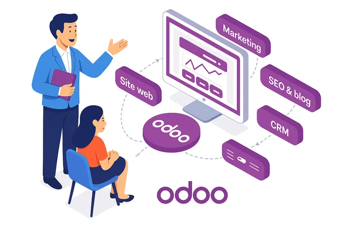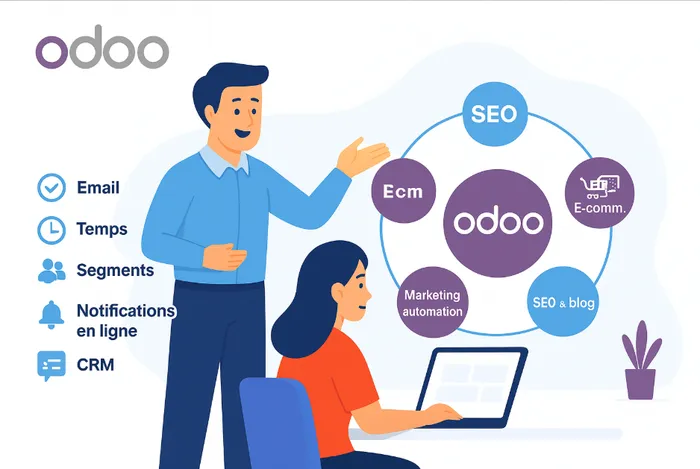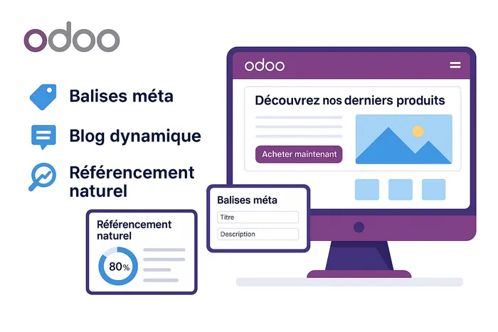 Odoo intègre les outils essentiels au SEO : méta-infos, sitemap, gestion des mots-clés… Ajoutez à cela un blog intégré et des contenus enrichis (vidéos, images), et vous boostez votre présence naturelle sans efforts superflus.