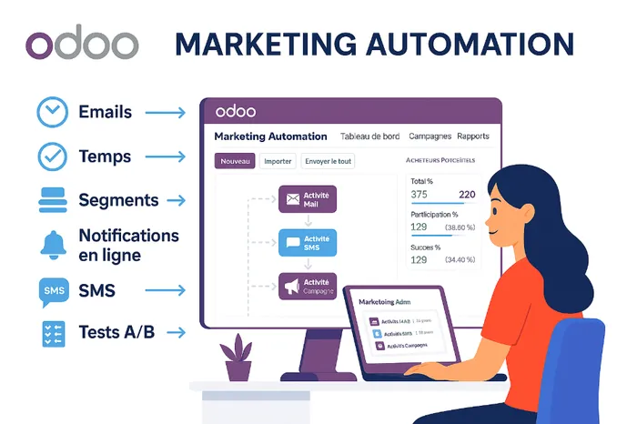 Grâce à Marketing Automation, Odoo permet de créer des parcours clients intelligents : mails de relance, suivi post-visite, panier abandonné, segmentation dynamique… Et comme le tout est lié au CRM, chaque action devient contextualisée et pertinente.